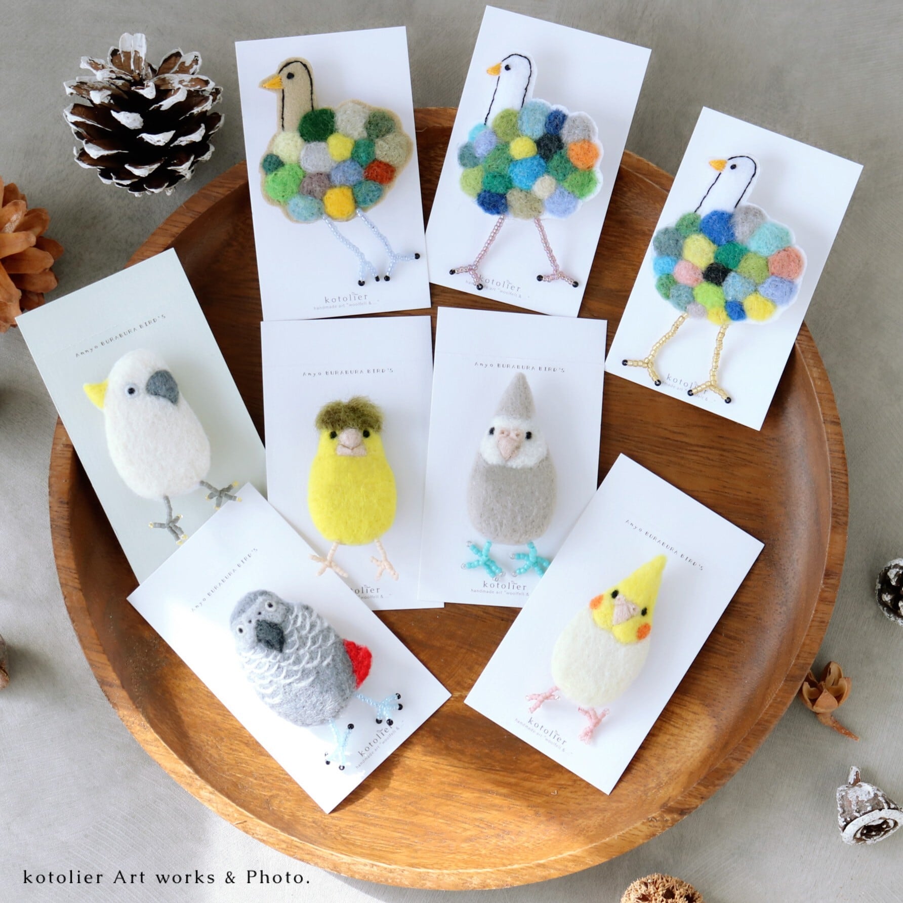 ※販売対象は鳥さんブローチ1羽のみです。撮影小物、備品は付属しません。