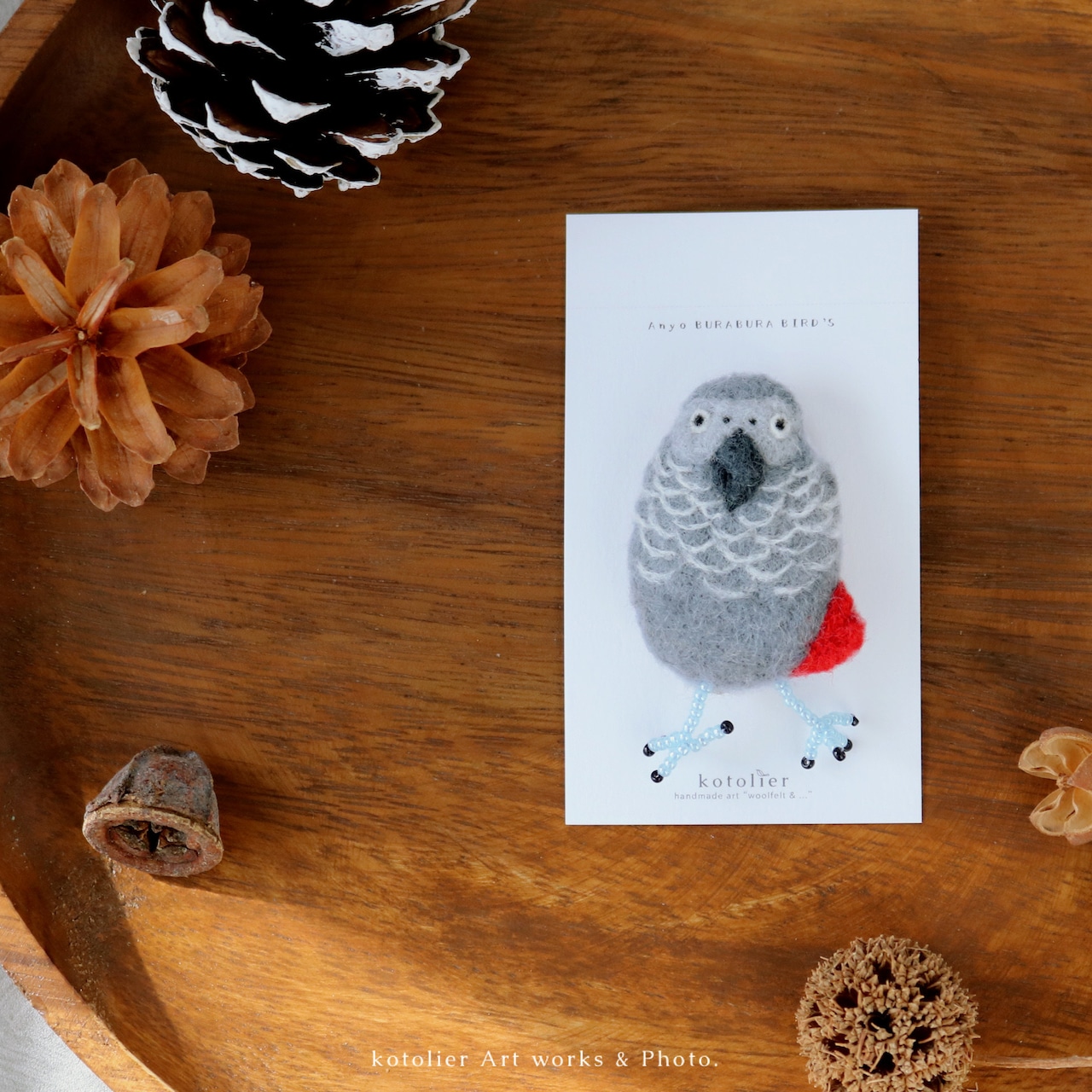 【予約購入】あんよブラブラ鳥さんブローチ ~ヨウム~ 2025.愛鳥祭