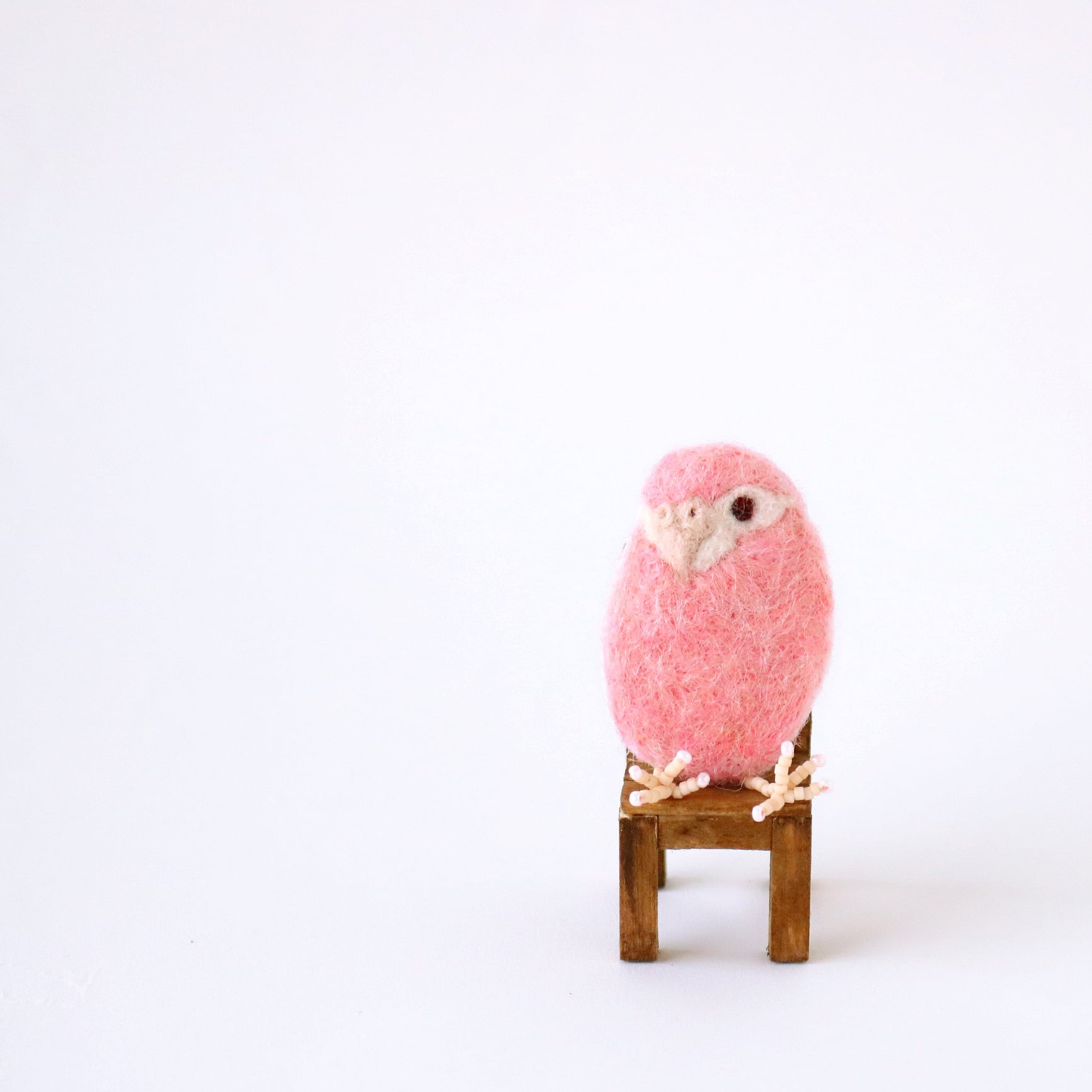 羊毛フェルトは摩擦に弱いです。また、あんよの部分はビーズでできております。お取り扱いの際は十分ご注意ください。