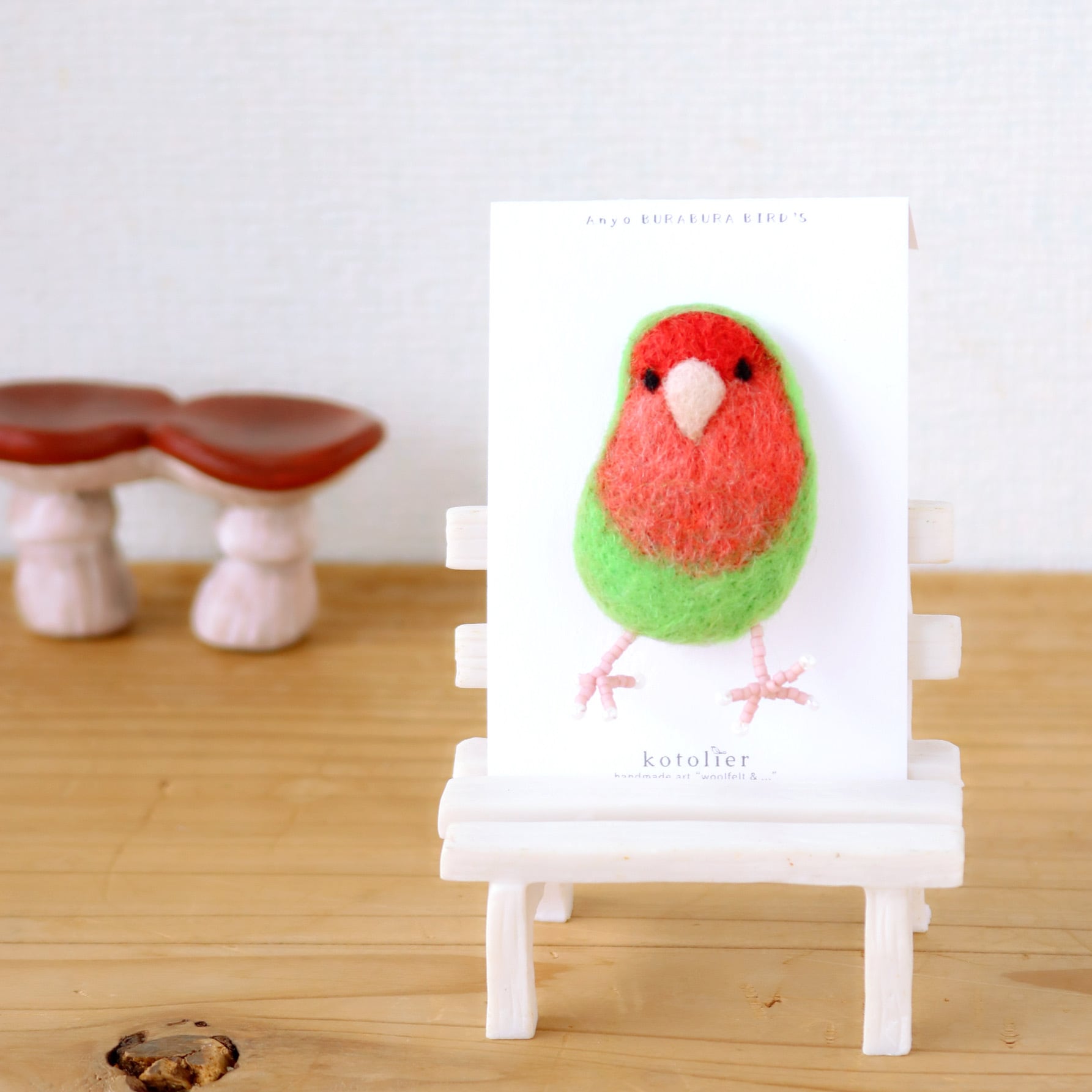 【予約購入】あんよブラブラ鳥さんブローチ ~コザクラインコ~ 2025.愛鳥祭